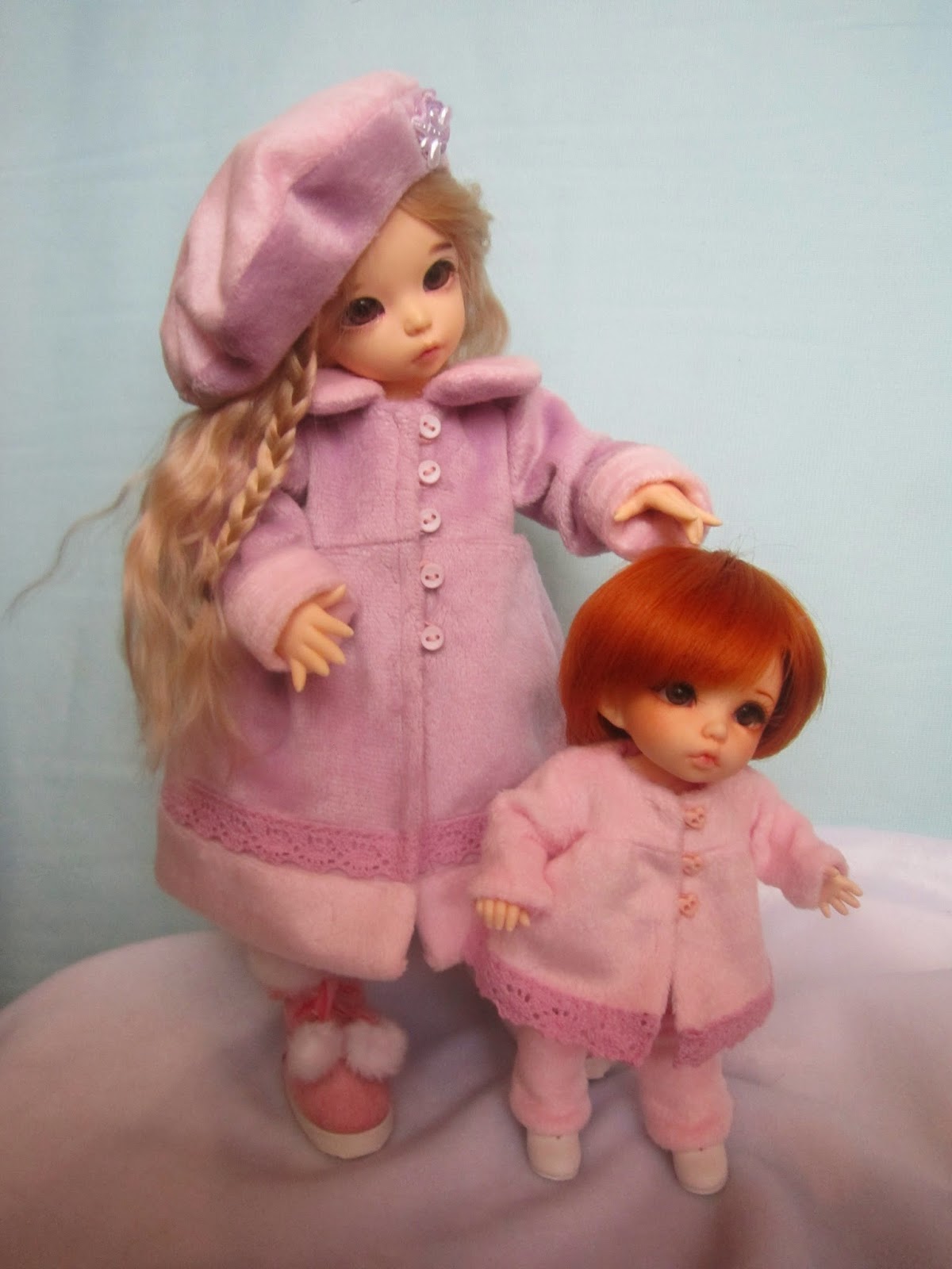 Пальто на Варе и Соломие одно и то же .Варя(LittleFee) и Соломия (Tonner Effanbee Trixie) немного разные по комплекции поэтому на Вареньке пальтишко чуть свободней.